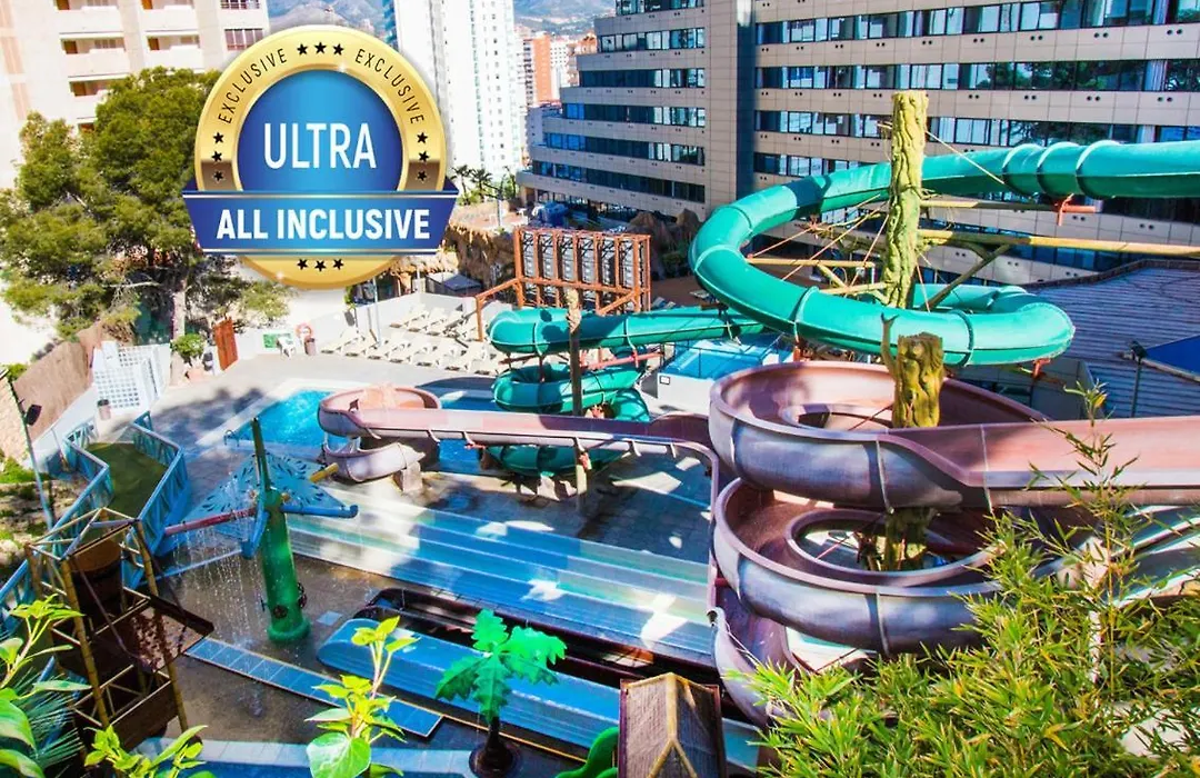 This African-themed Benidorm hotel is a paradise for families seeking adventure and relaxation in equal measure. Situated close to Levante Beach, Magic Aqua Rock Gardens immerses guests in an exotic experience, with its waterpark featuring thrilling slides and splash areas that are a hit with the kids. The hotel also offers a comprehensive animation program, ensuring that there’s never a dull moment. The themed rooms are designed with families in mind, offering spacious accommodations that can comfortably house large groups. Dining options are varied, catering to even the pickiest eaters, and the rooftop adults-only bar allows parents to sneak away for a bit of relaxation. Magic Aqua Rock Gardens stands out as a premier choice for families looking to maximize their fun in Benidorm.