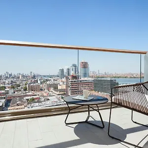The William Vale redefines luxury in Williamsburg, Brooklyn, with its bold architectural design and panoramic views of the Manhattan skyline. This all-balcony, luxury hotel is a masterpiece of modernity, offering a unique blend of artistic flair and luxury comforts. Guest rooms and suites feature custom metalwork details, floor-to-ceiling windows, and open-air balconies. The Vale Pool, New York City's longest outdoor hotel pool, provides a spectacular urban retreat. The hotel's elevated public park and award-winning culinary concepts by renowned chefs make it a cultural hub. The William Vale stands as a beacon of contemporary luxury, capturing the vibrant spirit of Brooklyn.